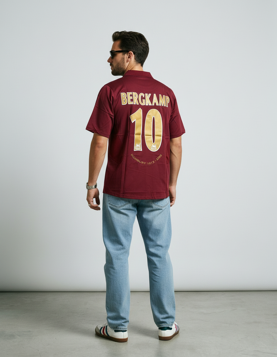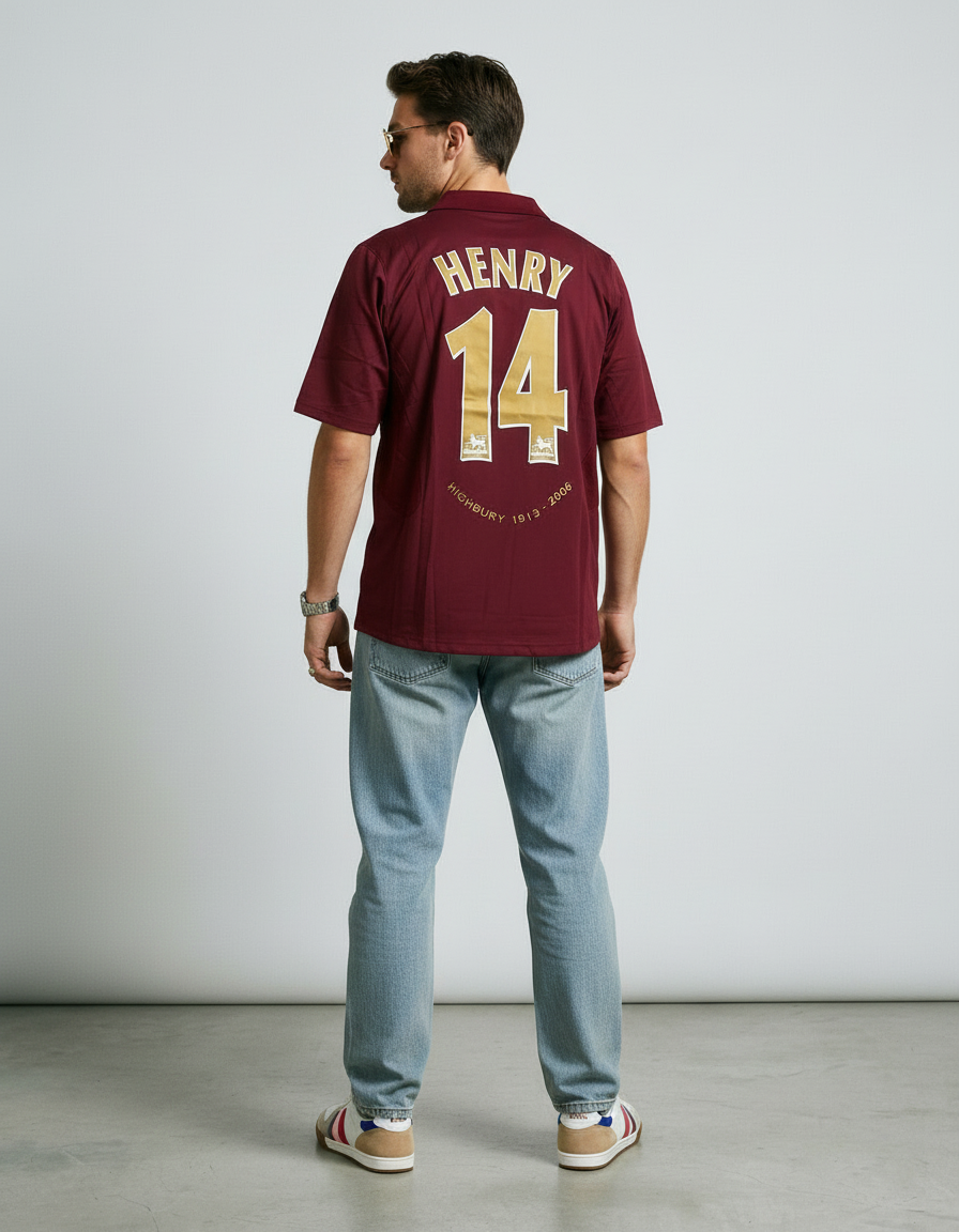 Camiseta Arsenal 05-06 en granate, con detalles dorados y escudo conmemorativo “Highbury 1913-2006”. Un diseño especial que marca el cierre de una era legendaria. ✨⚽ Vestida por figuras como Henry, Bergkamp y Pires, símbolo del último capítulo en Highbury.